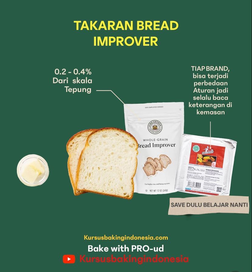 Baking Improver dan Takarannya, bisa di cek juga di kemasan masing-masing namun bagi Sobat Bakers yang ingin membuat Roti tanpa